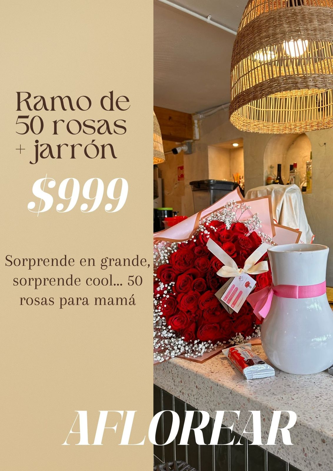 Un ramo exuberante de 50 rosas más un cuadro personalizado para capturar tus momentos más especiales. El regalo perfecto para celebrar el amor.