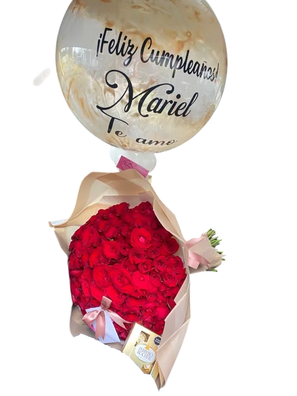 Ramo gigante de rosas rojas con una burbuja de 60 cm de diámetro totalmente personalizada 🎉🎉