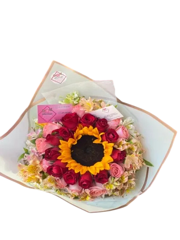 •Ramo de girasol con rosas y alstroemerias 🎉