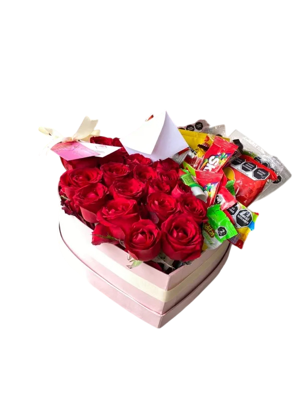 Corazón de rosas con dulces 🍬