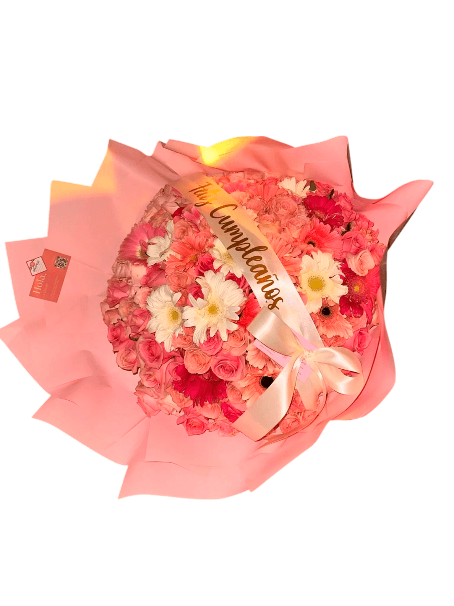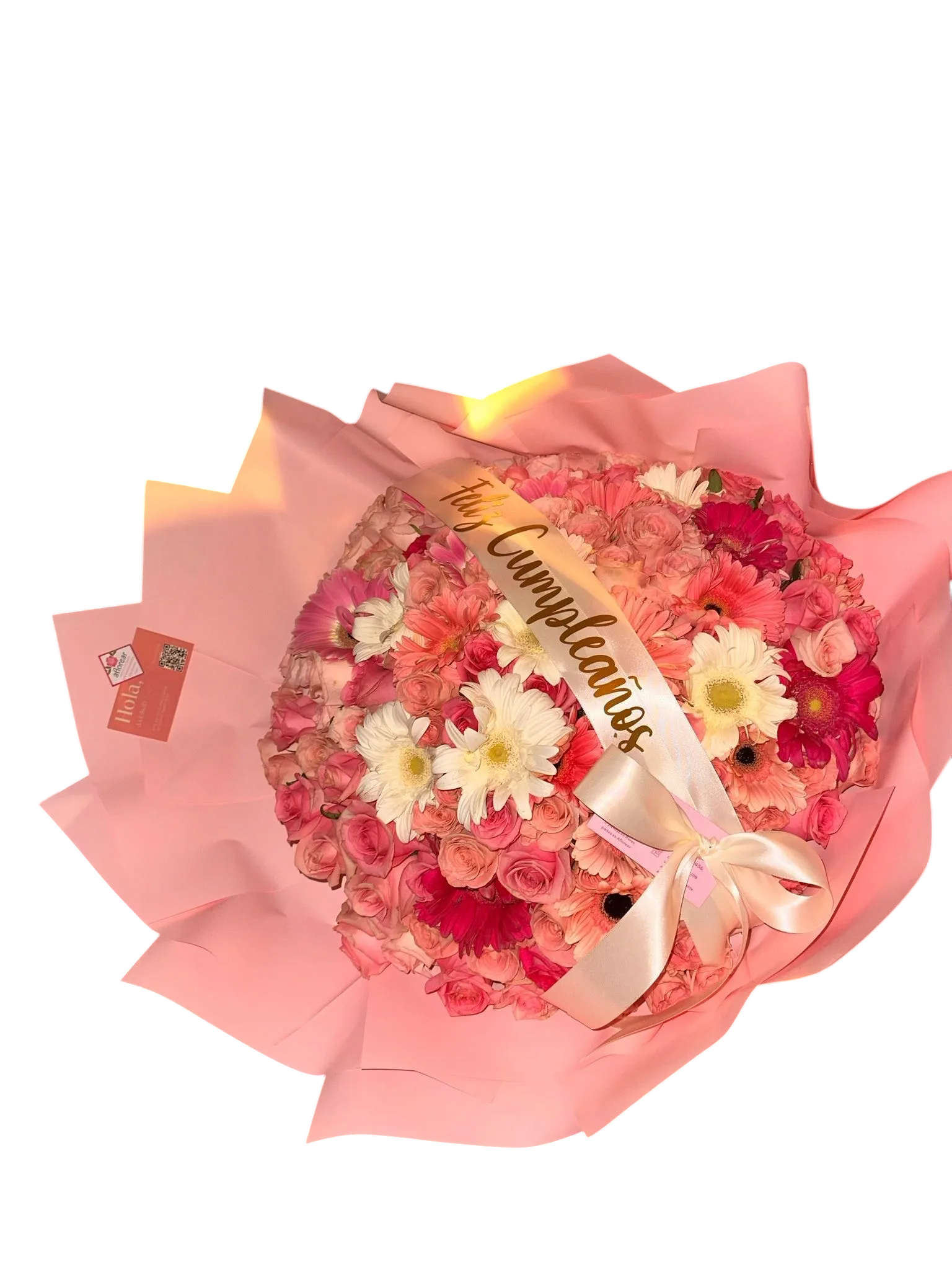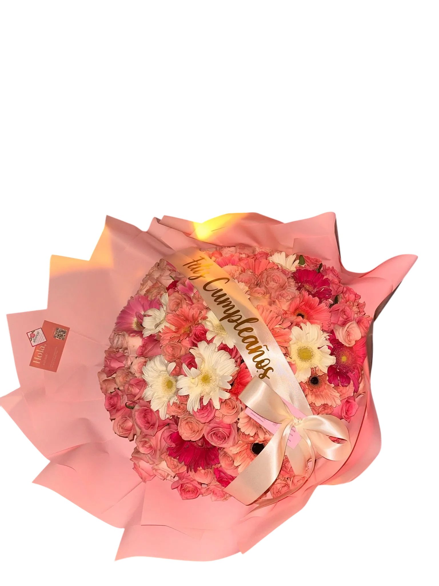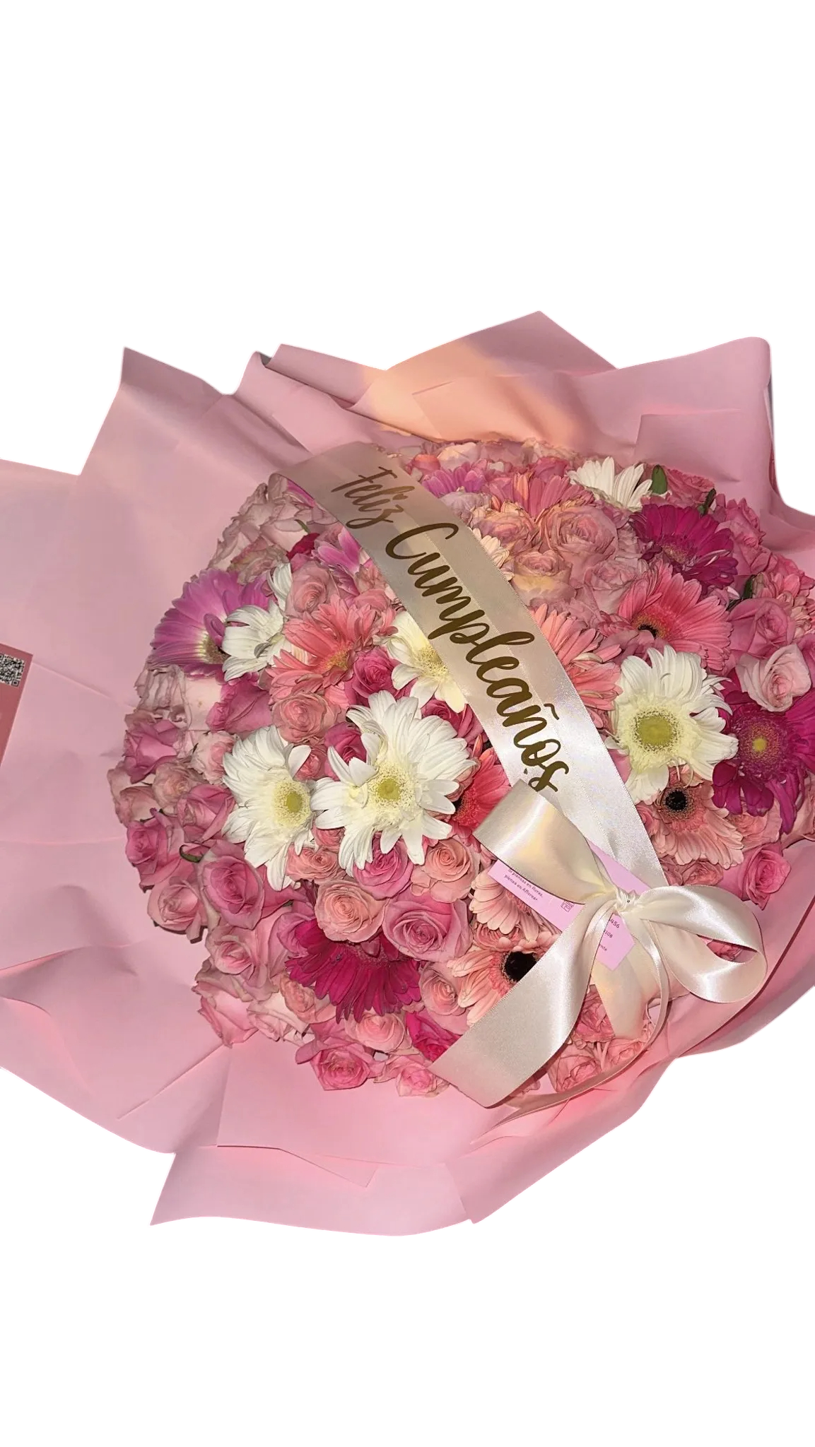 Incluye frase personalizada y el ramo es 100% rosa 🤩