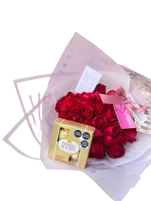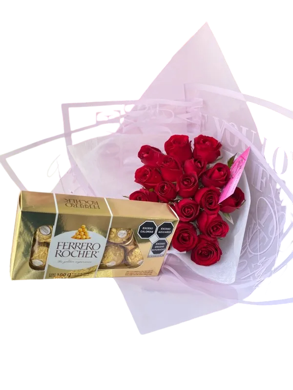 Ramo de 15 rosas + caja de chocolates 8pzas