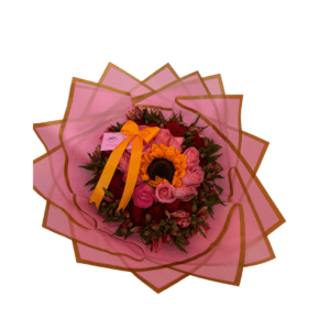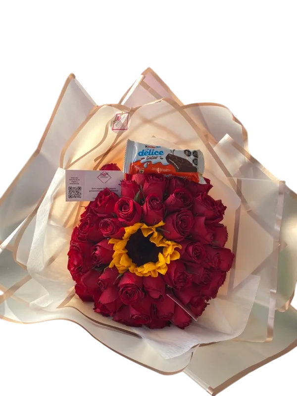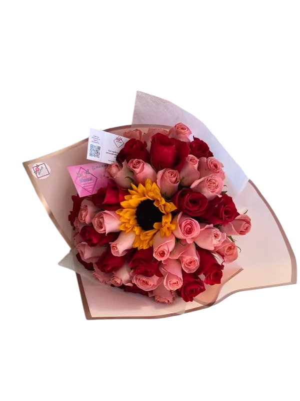 Ramo de girasol, rosa y follaje