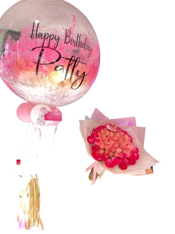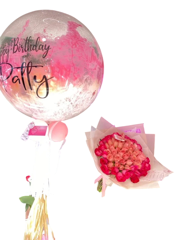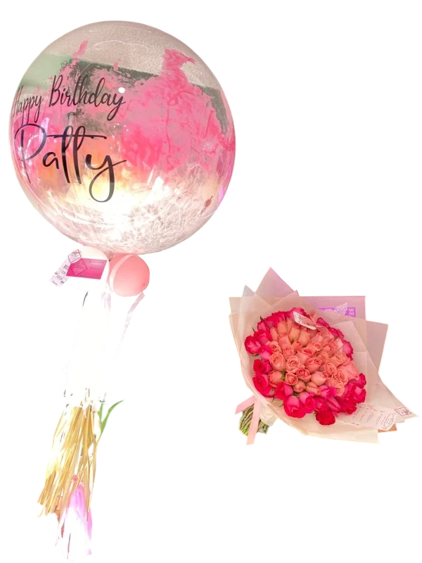 Ramo de 70 rosas y burbuja (como semi buchón)