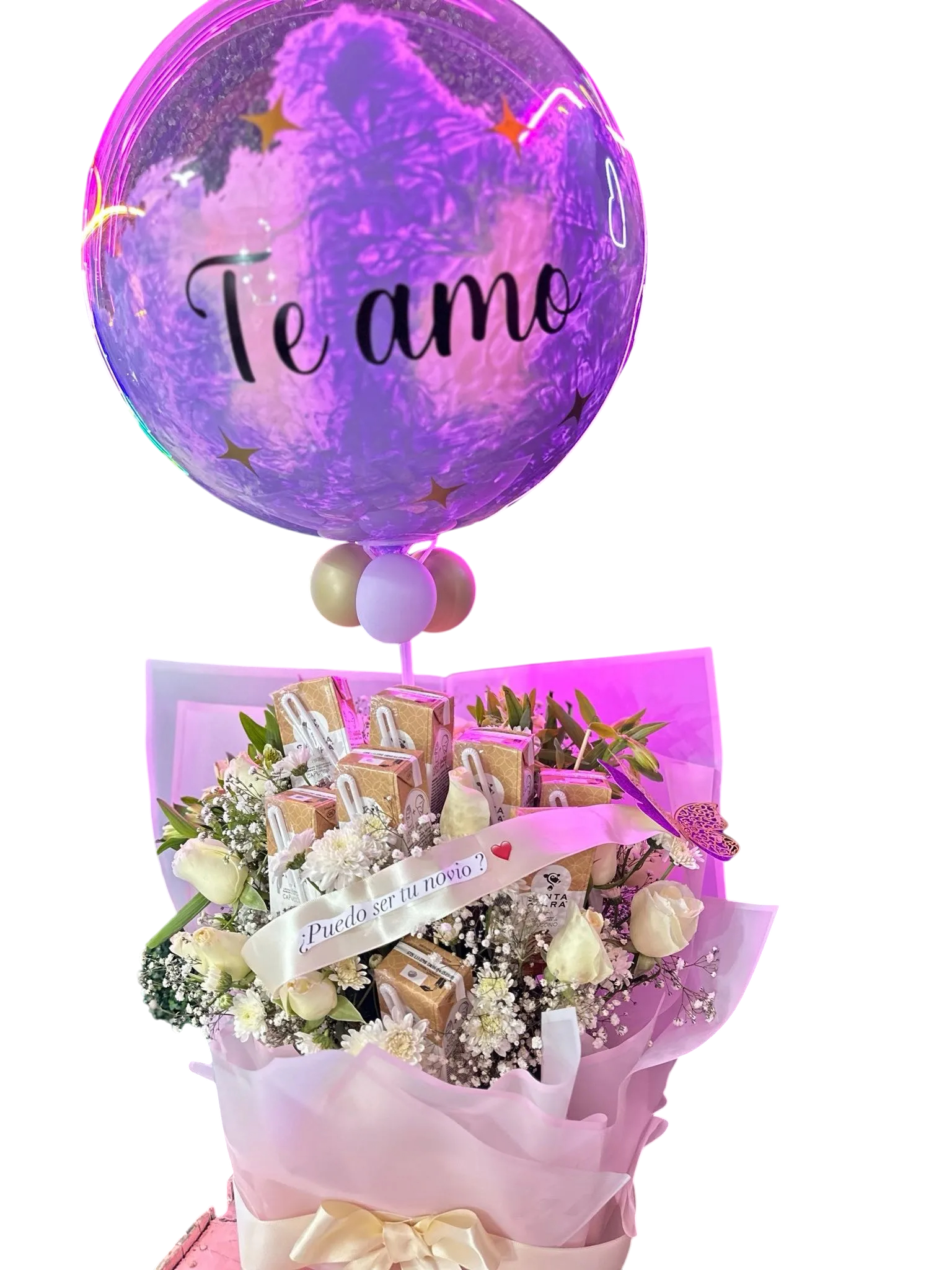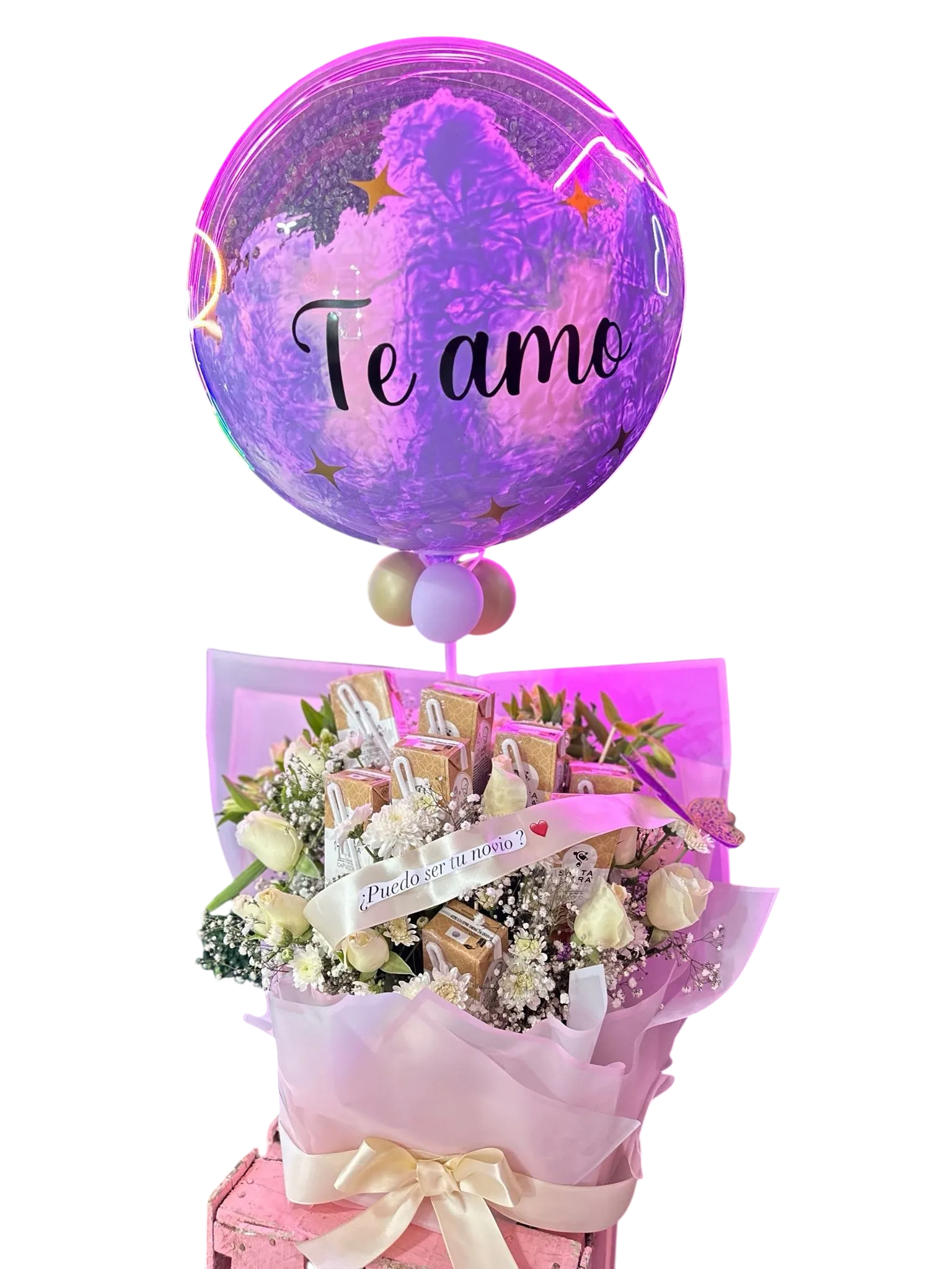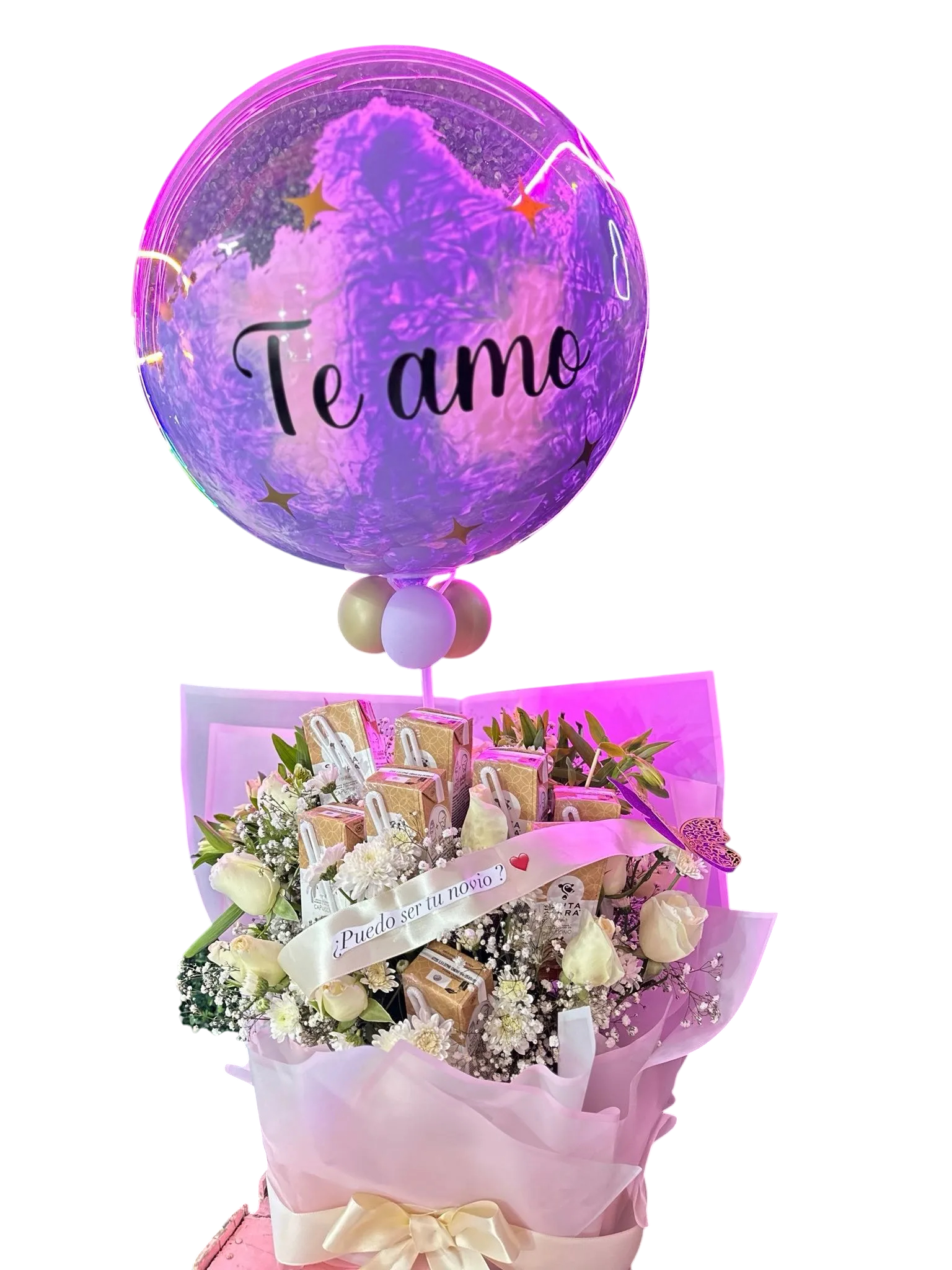 Combo bouquet de globos personalizados y ramo de 10 girasoles