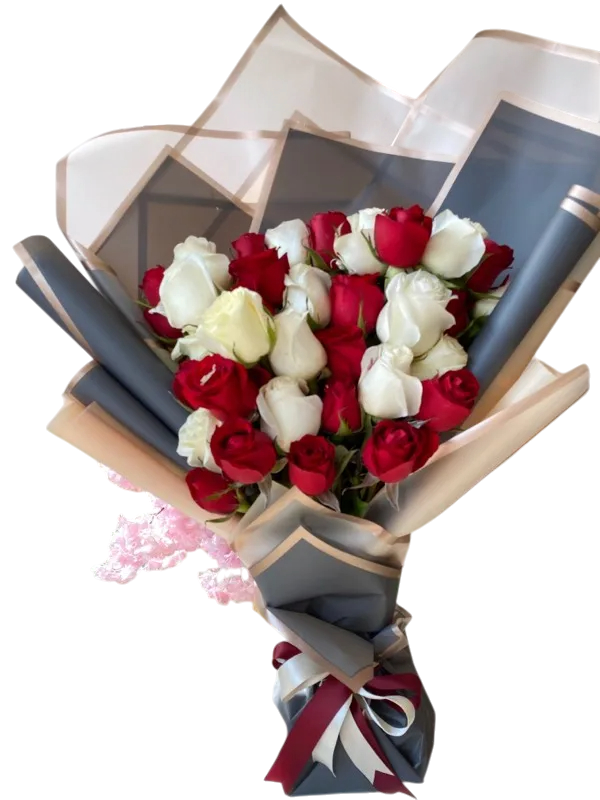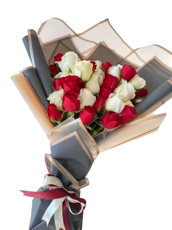 Combinación e flores blancas y rojas